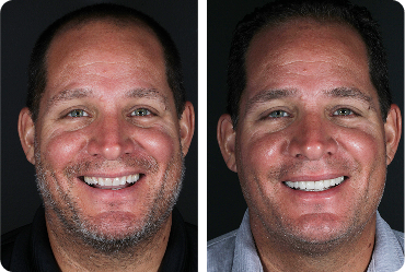 The patient came in wanting to improve his smile, and we tackled the process with a combination of whitening treatments to brighten his overall look. The next step involved Invisalign treatment to align and straighten teeth. Finally, we placed composite veneers to even out the look of his smile, resulting in a more uniform but natural smile.